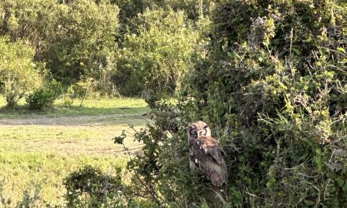 The Serengeti is best known for the Great Migration, but what truly sets it apart is that even without a river crossing, the wildlife feels relentless, the landscapes endlessly varied, and the sense of space unlike anywhere else on earth. Beyond the migration and the big cats, it was the quieter wildlife moments that stayed with me most — from the adorably petite oribi (quickly becoming my new favorite antelope) to the birds: a Verreaux’s eagle-owl dozing in a tree, pink eyelids on full display, and a bateleur eagle standing ankle-deep in a puddle — a sight so good even Ndossy pulled out his camera.